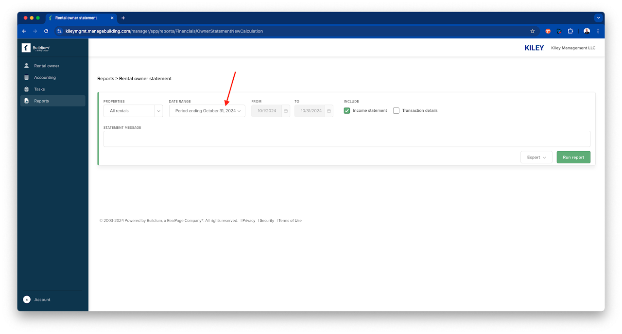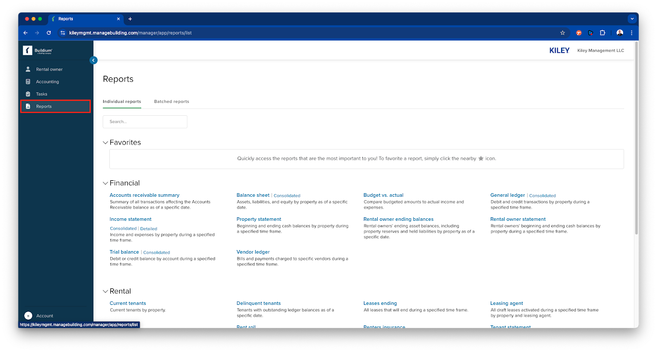 Log in to your Buildium account at kileymgmt.managebuilding.com. If you do not have Buildium login credentials, please email hello@teamkiley.com with your name, phone number, company name (if applicable), and at least one street address in your ...